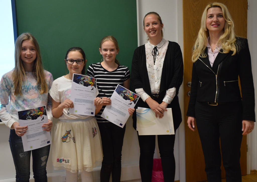Prvo mjesto odnio je rad grupe “Logo designers“ učenica Leone Andačić, Elizavete Bulavina i Lucije Poduje, (6. razred). Drugo mjesto odnio je logotip dua „Gaby&Saša“, koji čine učenici Gabriel Badurina i Saša Brkić (6. razred), a treće mjesto pripalo je učenicama Lari Ferjančić i Paoli Šuškić iz grupe „LP“ (6. razred). Učenice i učenici su predstavili ukratko svoje ideje te su primili diplome, a po završetku natječaja u svim partnerskim državama primit će i zaslužene nagrade. Uvodni pozdrav uputila je ravnateljica Osnovne škole Veli Vrh Irene Rigo napomenuvši kako joj je drago da se prijavio tako veliki broj