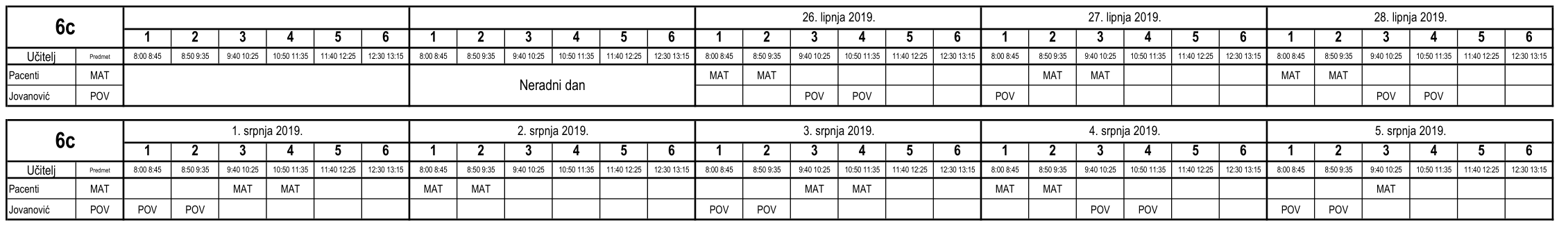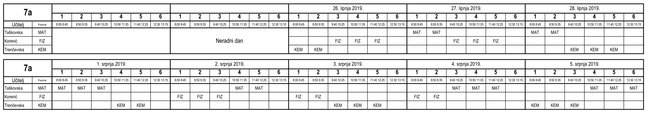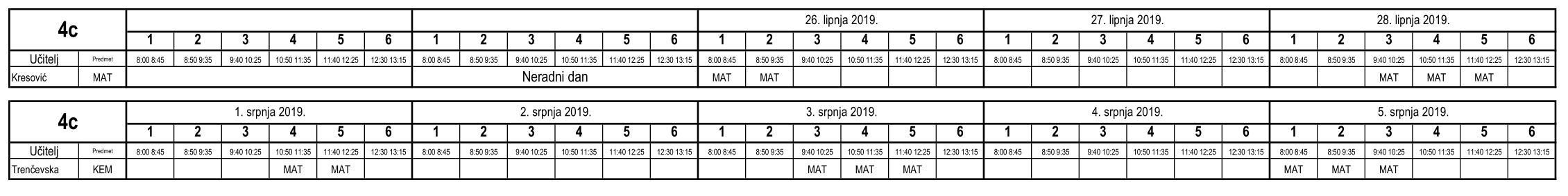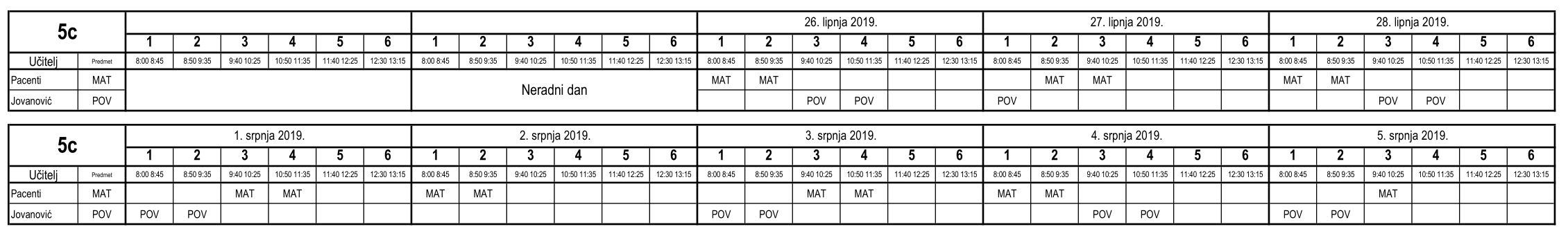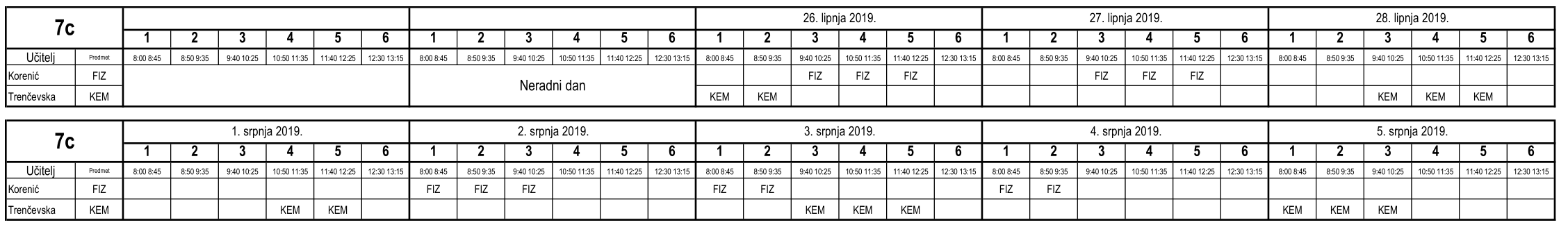 I ove godine neki učenici nisu uspjeli na vrijeme usvojiti predviđeno gradivo i za njih je organiziran dopunski rad. Raspored je sljedeći (klikom na tablicu dobije se povećani prikaz):