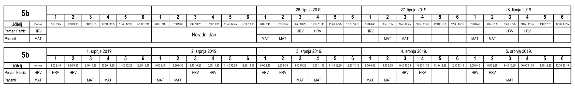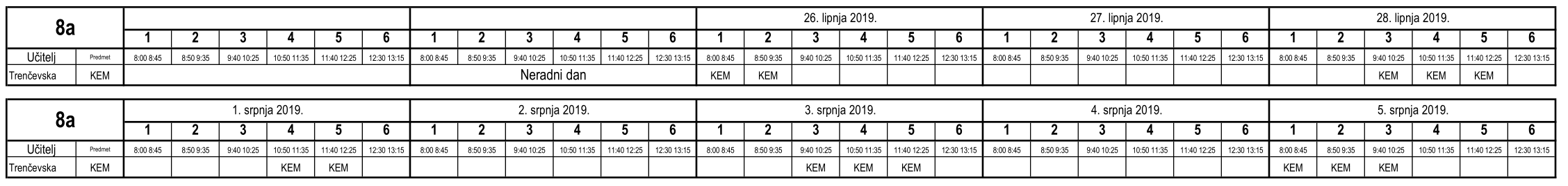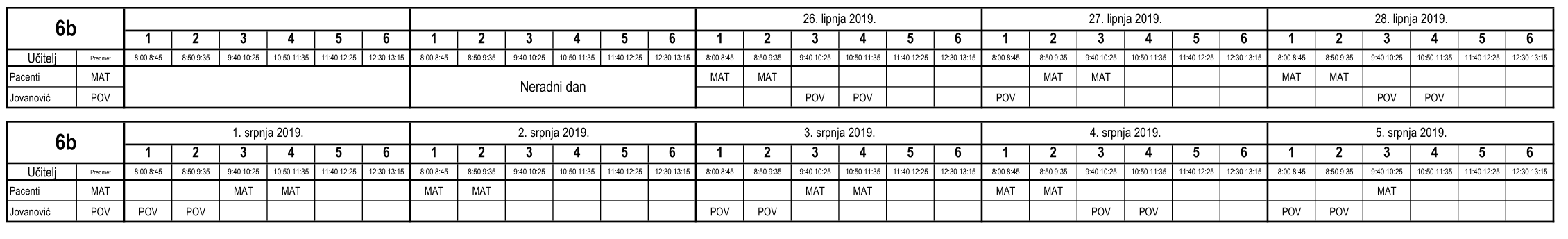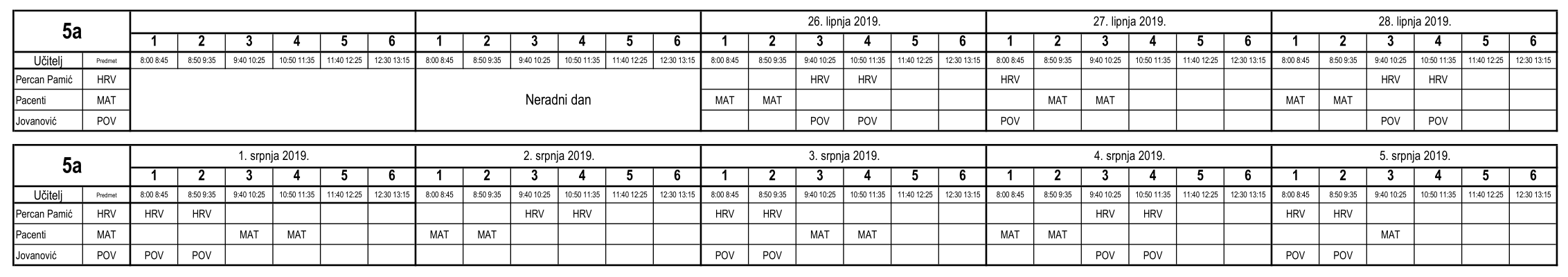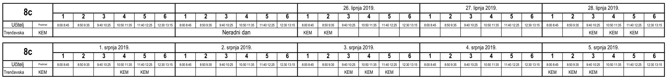 I ove godine neki učenici nisu uspjeli na vrijeme usvojiti predviđeno gradivo i za njih je organiziran dopunski rad. Raspored je sljedeći (klikom na tablicu dobije se povećani prikaz):