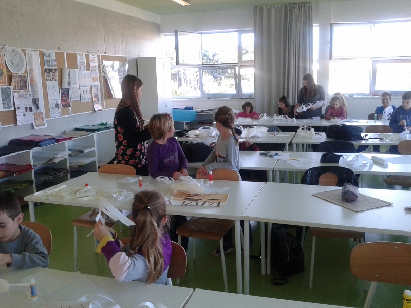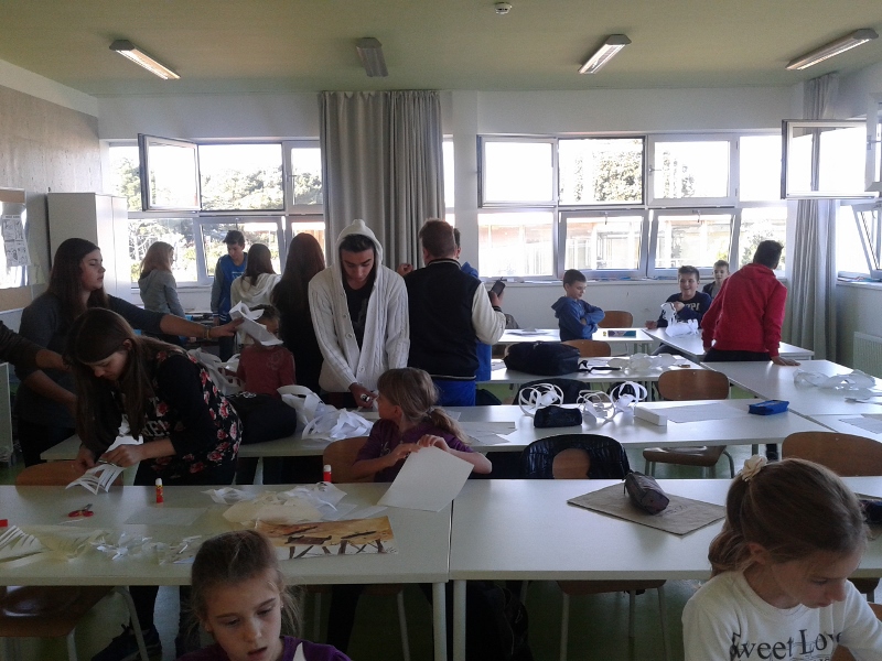Pogledajte ih na djelu zajedno s učenicima 8.a razreda u kabinetu likovne kulture. Sve to pod budnim okom prof. Roberte Nađ i učiteljice Tatjane Kadum marljivo izrađuju ukrase.