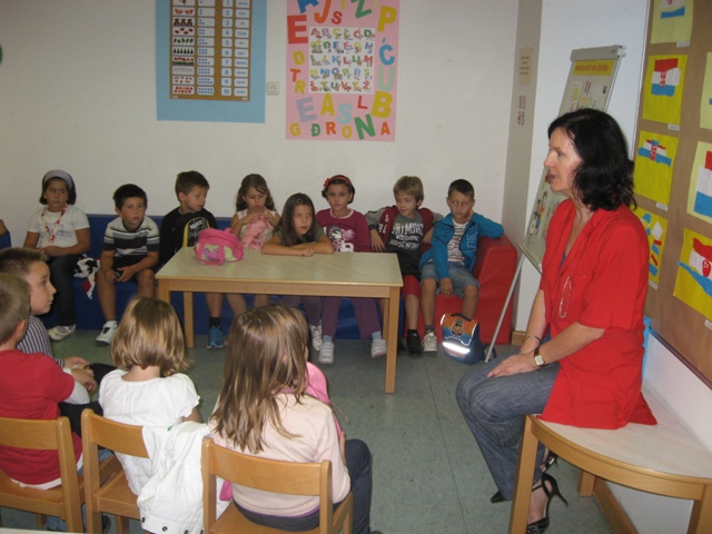 Posjet 1.b predstavi Mrav, mrav, mrav i cvrčak, te pulskoj Gradskoj knjižnici